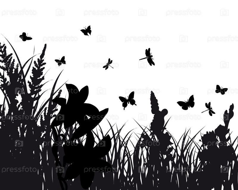 Силуэт травы на белом фоне