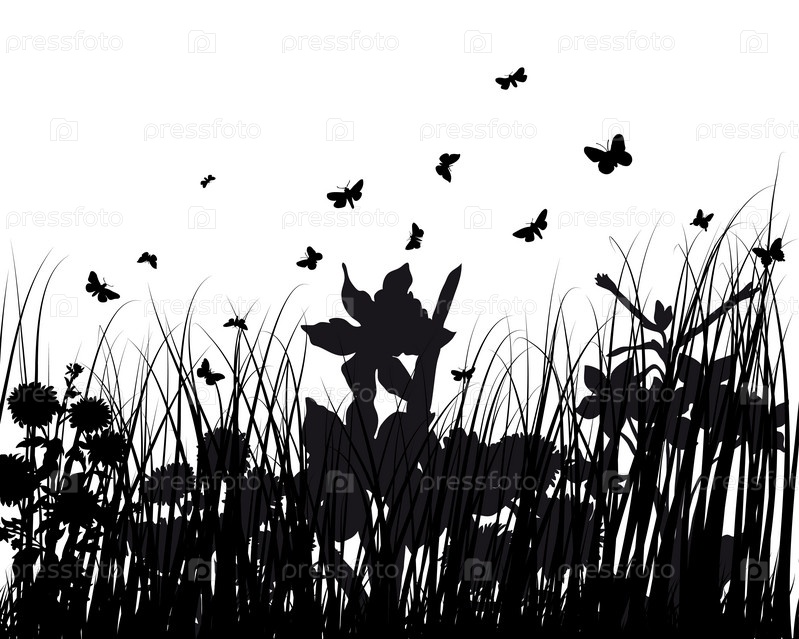 Силуэт травы на белом фоне