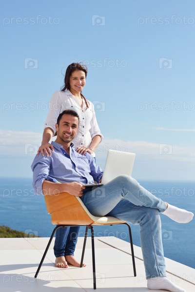 Молодая пара работает на ноутбуке