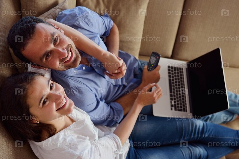Молодая пара работает на ноутбуке