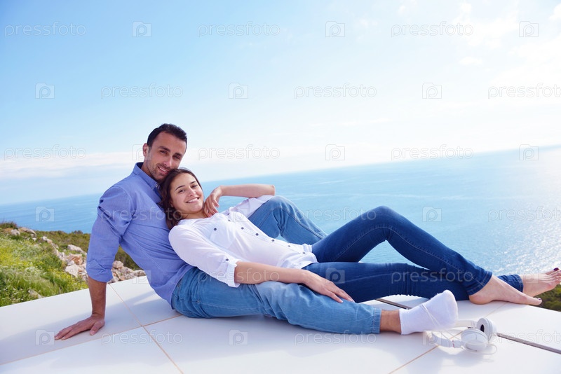 Расслабленная молодая пара дома