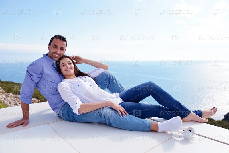 Расслабленная молодая пара дома
