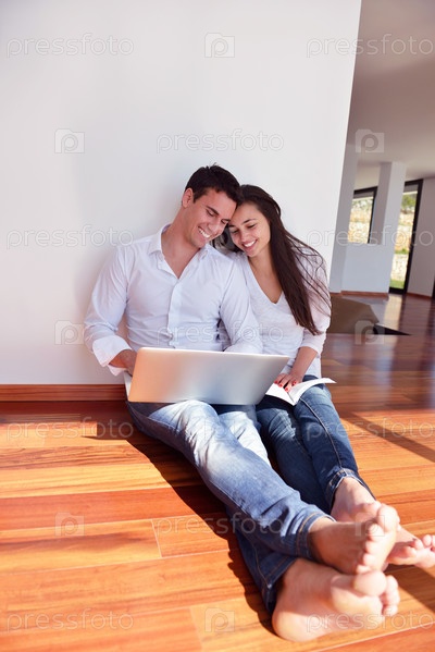 Молодая пара работает на ноутбуке