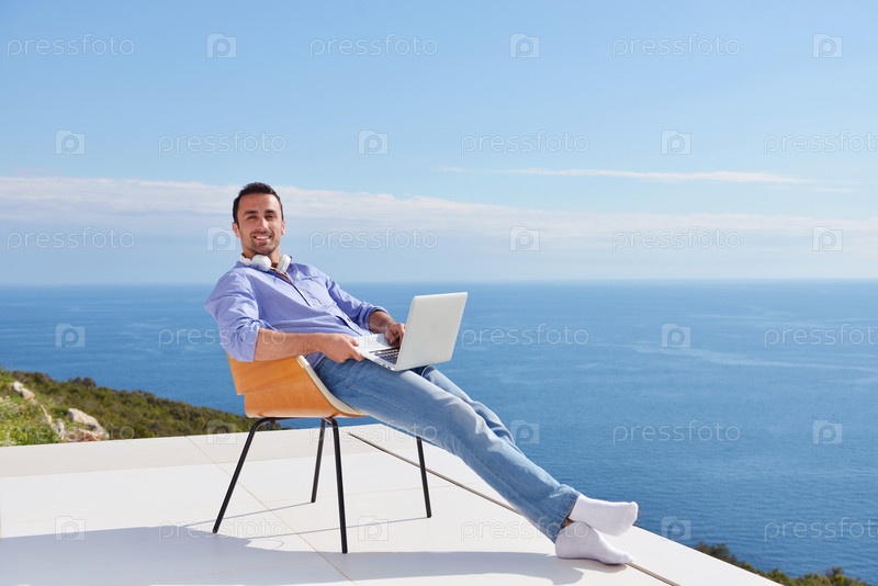 Расслабленный молодой человек на балконе