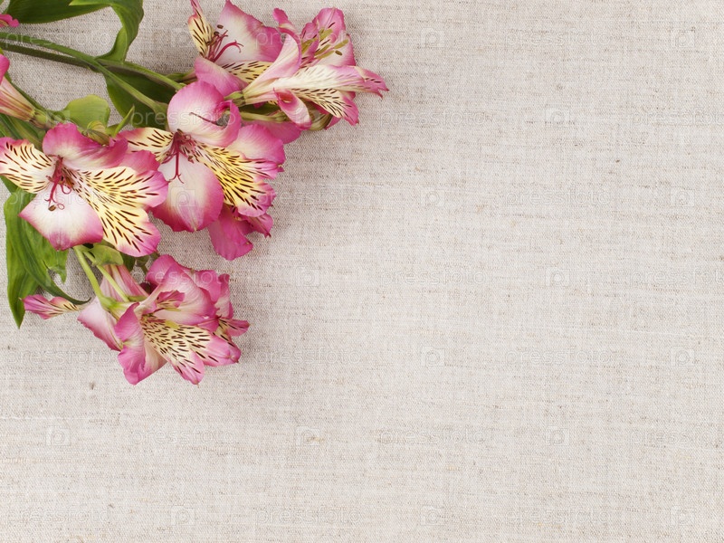 Красивые розовые цветы на фоне из холста