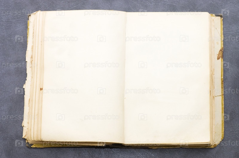 Открытая старинная книга на сером фоне