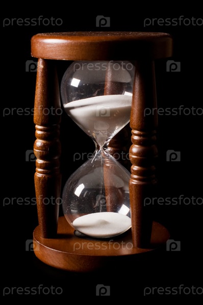 Старые песочные часы на черном фоне