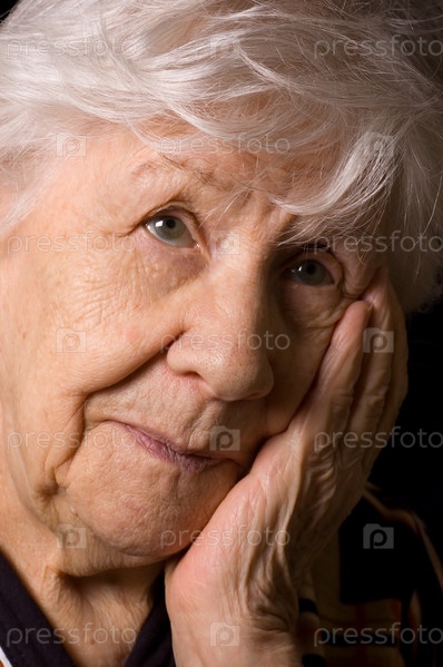 Портрет пожилой женщины на черном фоне крупным планом