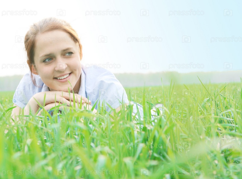 Девушка, лежащая на траве