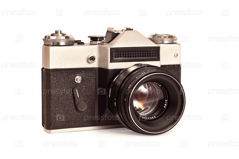 Старый пленочный фотоаппарат на белом фоне