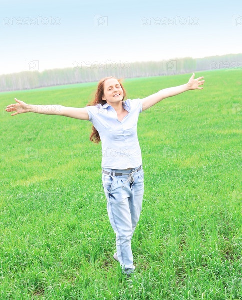 Молодая девушка на зеленом лугу