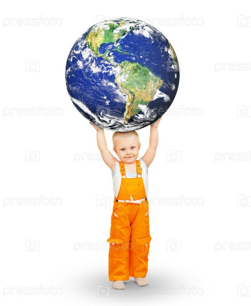 Маленький ребенок с глобусом
