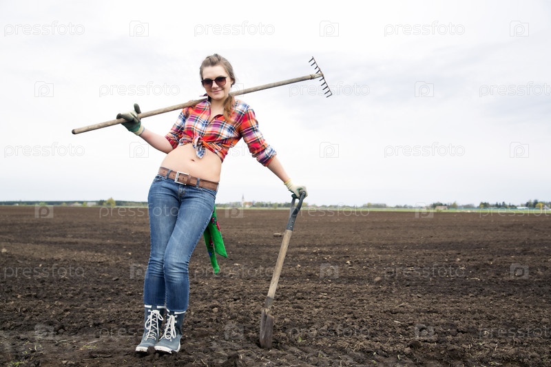 Женщина позирует в поле