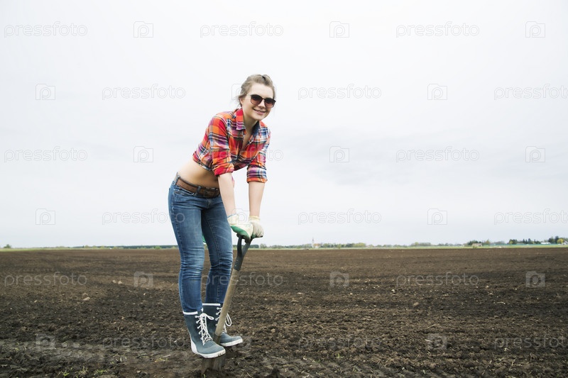 Женщина держит лопату