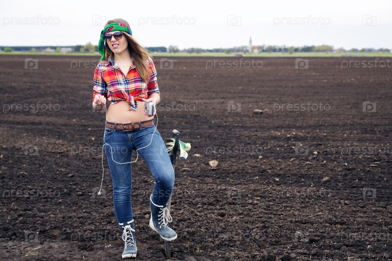 Девушка позирует в поле
