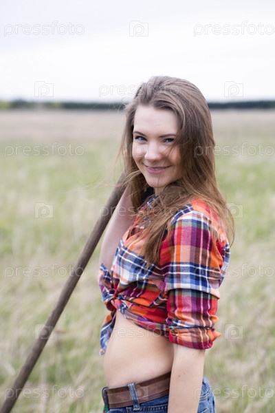 Девушка позирует в поле