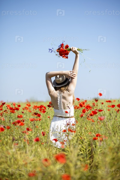 Девушка в поле с цветущими маками