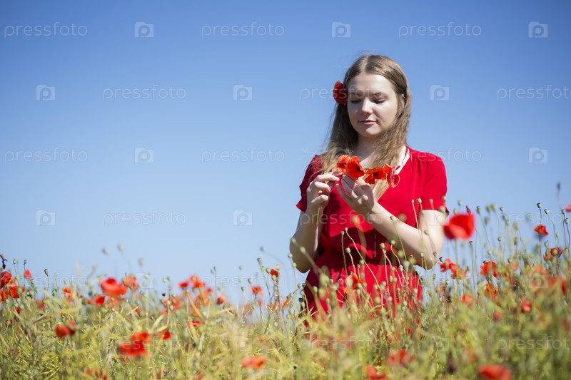 Девушка в поле с цветущими маками