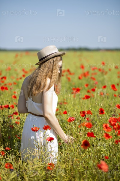Девушка среди цветущих маков