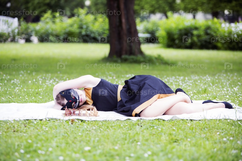 Женщина в маске играет в шахматы