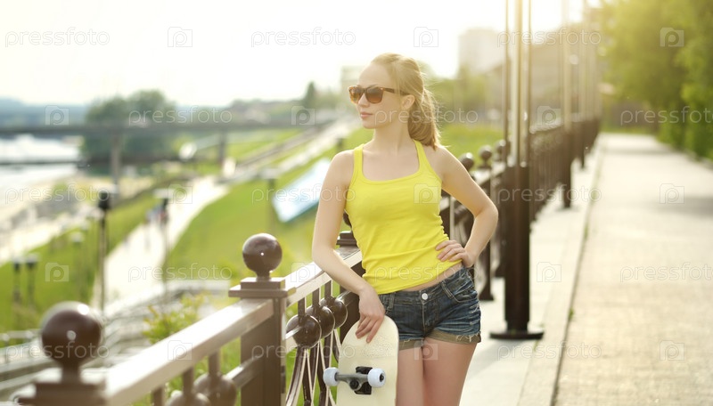 Девочка-подросток со скейтбордом