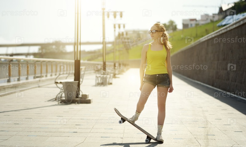 Девочка-подросток со скейтбордом
