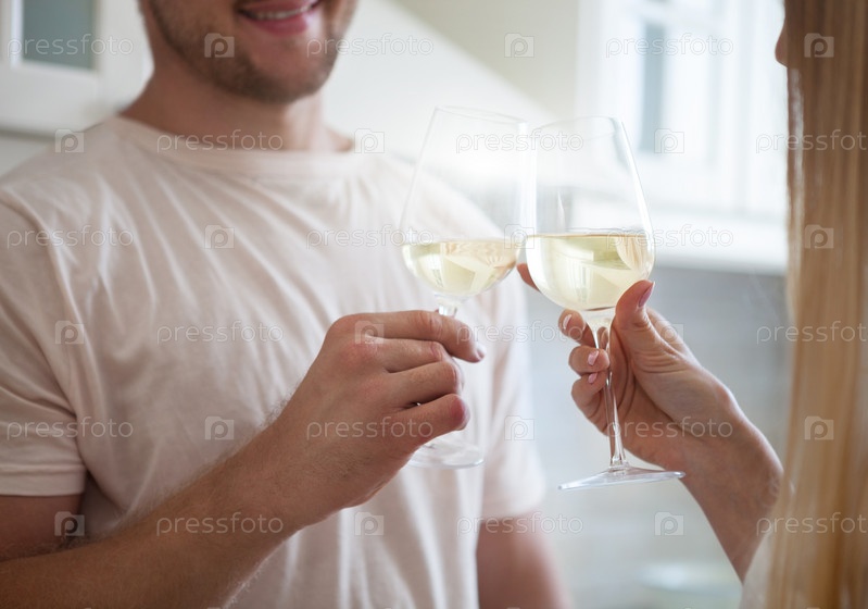 Молодая пара пьет вино