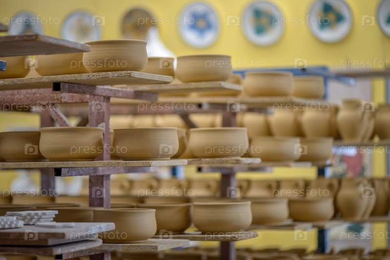 Полки с глиняной посудой