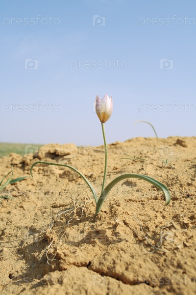Растущий тюльпан на фоне голубого неба