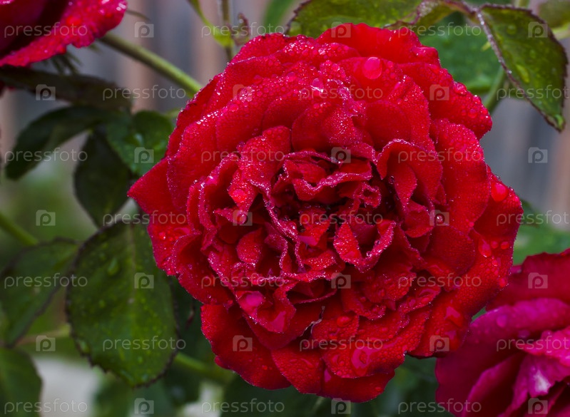 Красная роза с утренней росой