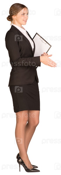 Деловая женщина тянет руку для рукопожатия