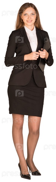 Деловая женщина держит планшет