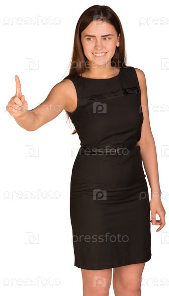 Деловая женщина нажимает пальцем на фон