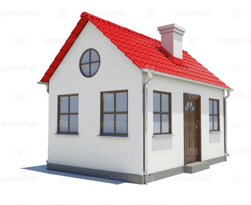 Трехмерный дом с красной крышей