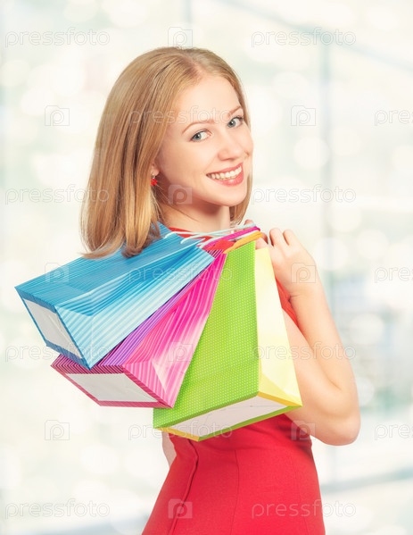 Счастливая женщина в торговом центре