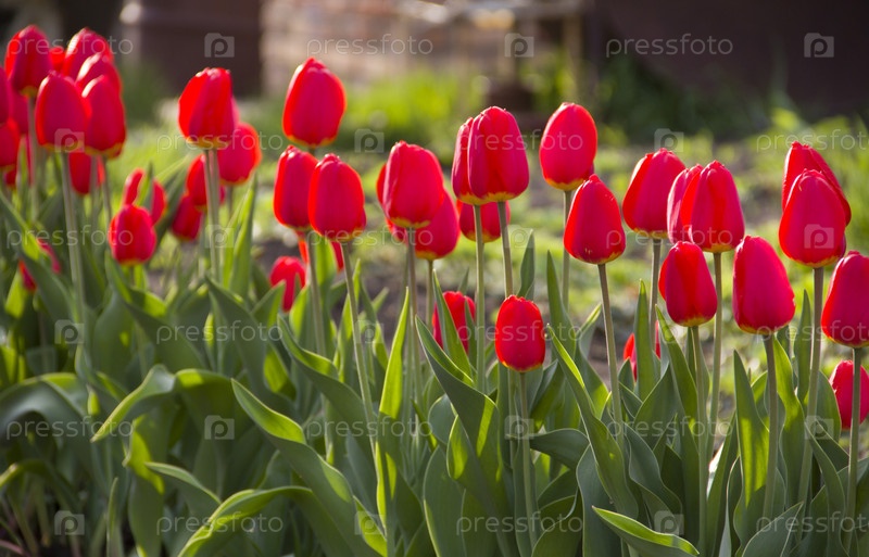 Красные тюльпаны в солнечном свете
