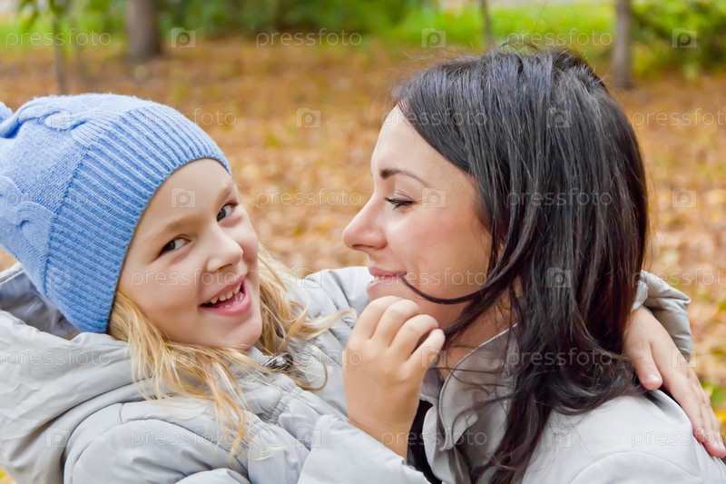 Мать и дочь в осеннем парке