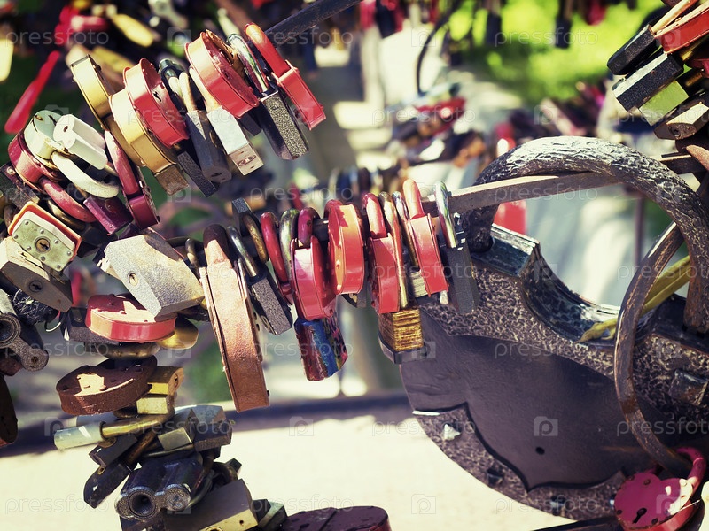 Цветные замки висят в ряд