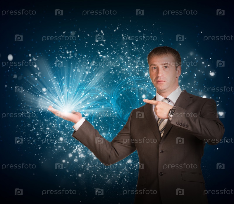 Деловой человек с волшебным светом в руке