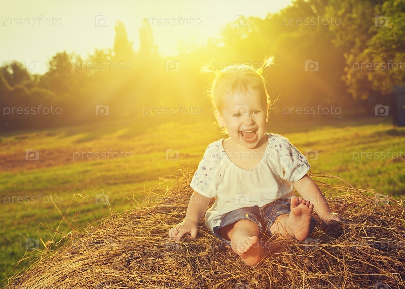 Счастливая девочка на сене