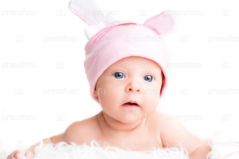 Новорожденная девочка в розовой шапке