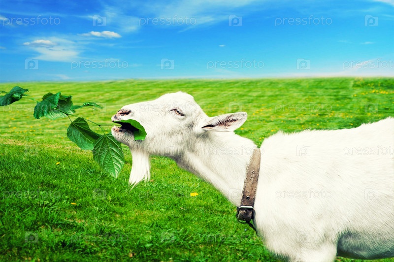 Белая коза на лугу