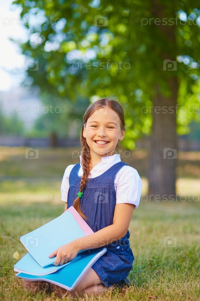 Школьница с тетрадями