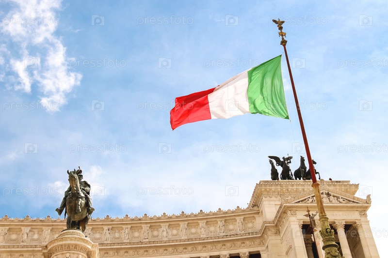 Флаг на памятнике Виктору Эммануилу II. Пьяцца Венеция, Рим, Италия