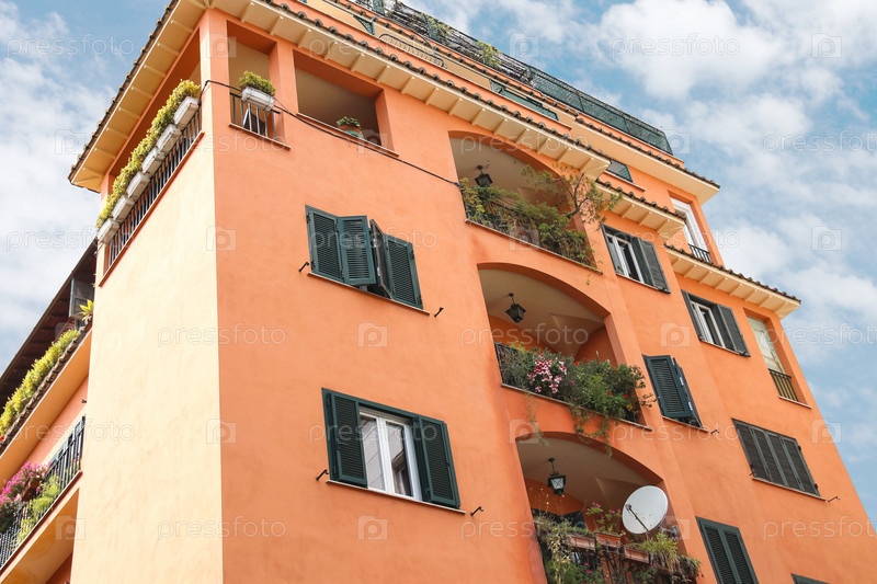 Живописный итальянский дом с цветами на балконе