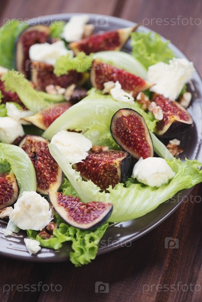 Инжир, моцарелла и грецкие орехи в салате