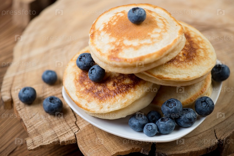 Оладьи со свежей черникой крупным планом