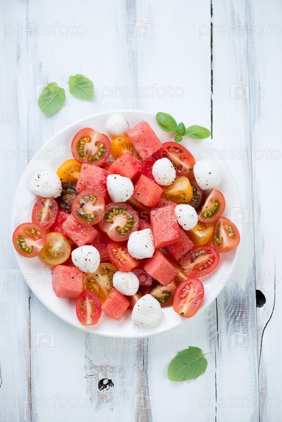 Салат с арбузом, помидорами и сыром моцарелла