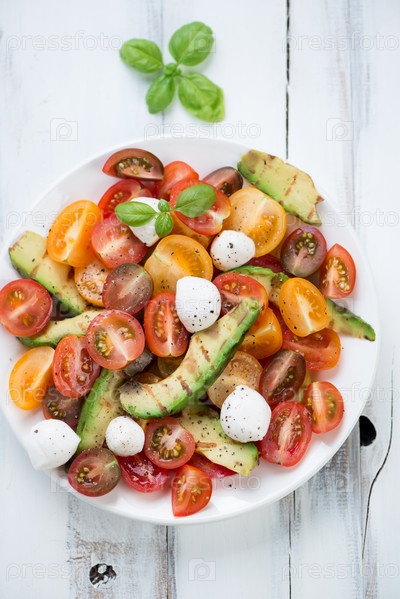 Салат с авокадо-гриль, помидорами и сыром моцарелла