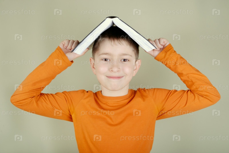 Мальчик с книгой в форме домов на голове